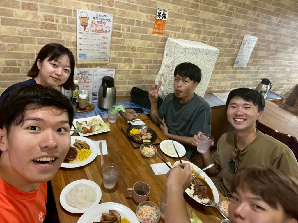 2日目は二つの班に分かれて行動し始めます。午前中に、網走監獄に向かいました。道中は北海道なだけあり、信号もほとんどなく快適に漕げました。網走監獄の入館料は1500円と割高でしたが、十分楽しむことができました。網走監獄はなかなか行く機会のない場所なので、行くことができてよかったです。昼はケンタッキーで食べました。そのあとはポツポツ雨が降ってきましたが、レインコートを着て、目的地であるクリオネキャンプ場を目指します。クリオネキャンプ場についてからはマンガなどがたくさんある管理棟で休憩しました。夜はここで大盛りカレーを食べました。値段が500円で財布に優しいです。このキャンプ場で体をしっかり休めて、3日目の知床峠にそなえます。