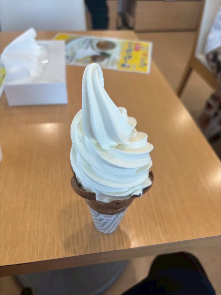 キャンプ場に向かう途中「生乳日本一の町」別海町の道の駅に寄っておいしいソフトクリームを食べました。
