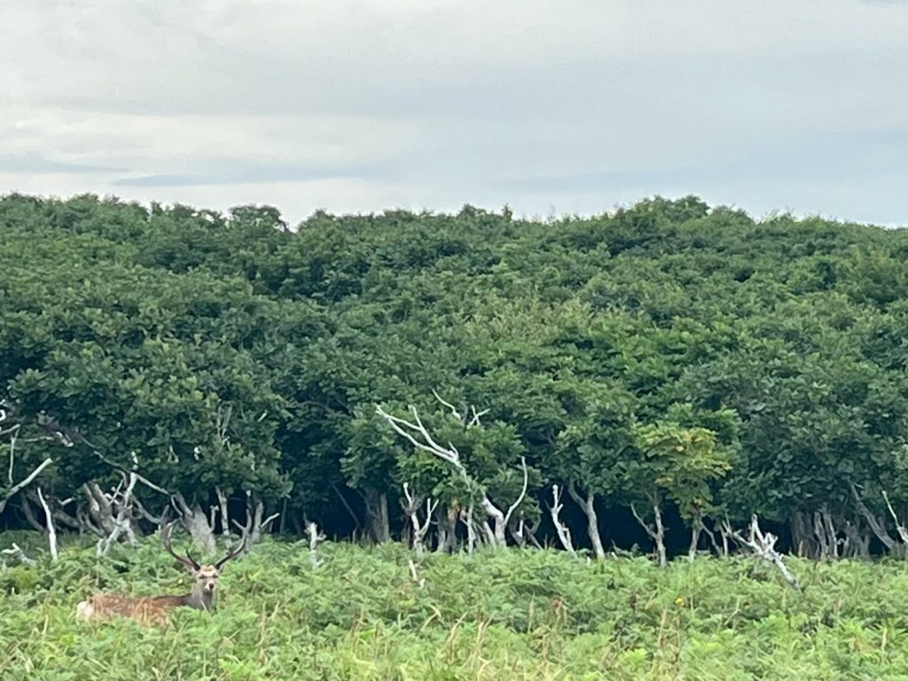 鹿さんと野付半島先端の灯台!ムヒは絶対に持って行きましょう。