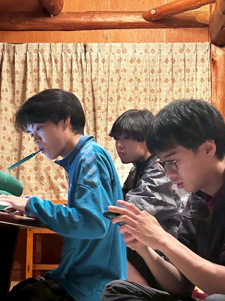 0日目は前日入りするために昼間に名大に集合して、ハイエースで長野に向かいました。