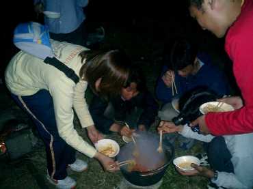 夜はキムチ鍋。焚き火でやると一段と美味いのさっ!