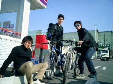 コンビニで休憩中。この日は名市大の龍一君がゲスト参加してくれました