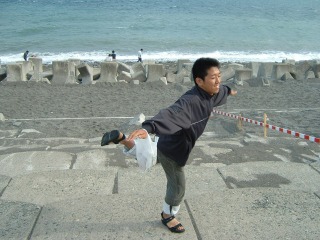 | やたらと他の人が多かったので飛び込みは断念。変わりにいい場所を見つけました! 「はははははは!(寒くて笑いが止まらない)」 |
