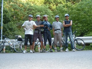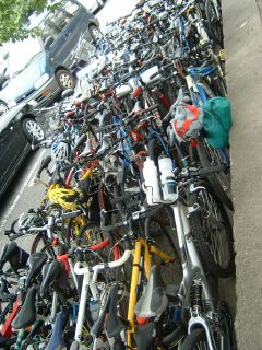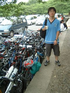 | レース後、バーベキューをやった公園の駐車場にて。 中サの自転車展覧会!これ倒したら損害賠償いくらになるんだろう・・・ |