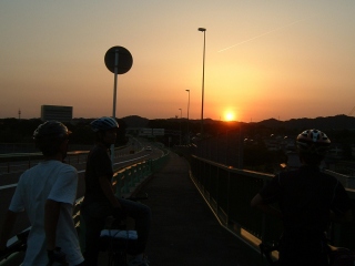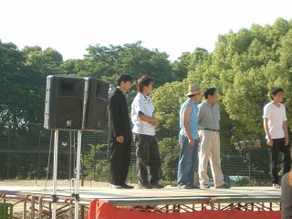 | グリーンロードからの夕日。 | おまけ 名大祭で応援団にさらわれてステージに上がる平岩くん。 「あ、はい、いいですよ。」 |