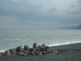 | 翌朝のヒスイ海岸。 日本海の荒波から太平洋に向け走り出す! |