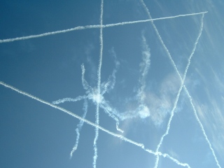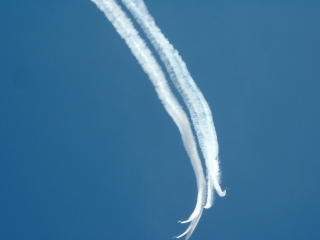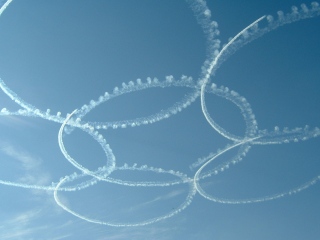 煙を出しながらの編隊飛行。