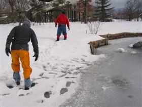 | 池にも氷が張っています | どうやら、頭のいい人たちが落ちたようです |