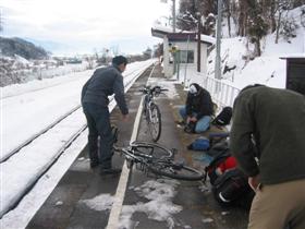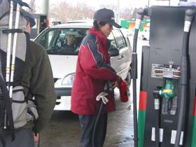| 無人駅にて輪行解除 | ガソリンを100円分購入 |