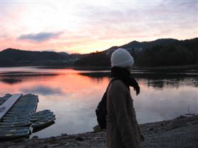 | 朝日がきれいです | いるか池からリトルワールドに向かいます |