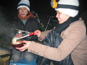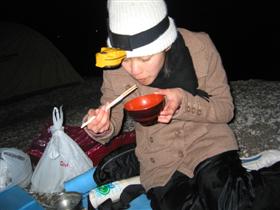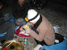 | 食べだすと止まらないのよね! | 朝目覚めると、徹夜組が外に・・・ |