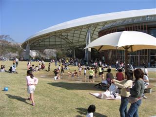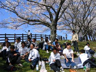 | 桜の木漏れ日の下で、まったり×3〜♪ 青と桜のコントラストです。 |