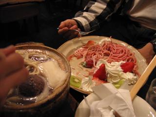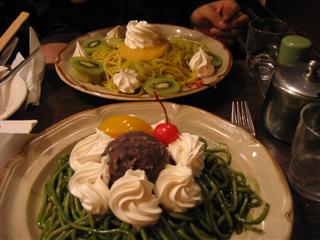 | 夜はもちろんマウンテン! ほらほら、見るからにおいしそうでしょ? 左は小倉クリーム抹茶スパとキウイスパです |