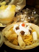 向こうのテーブルはカキ氷を頼んだみたい カキ氷がやけに大きく見えるのは、 遠近法による物なので気にしないで下さい |