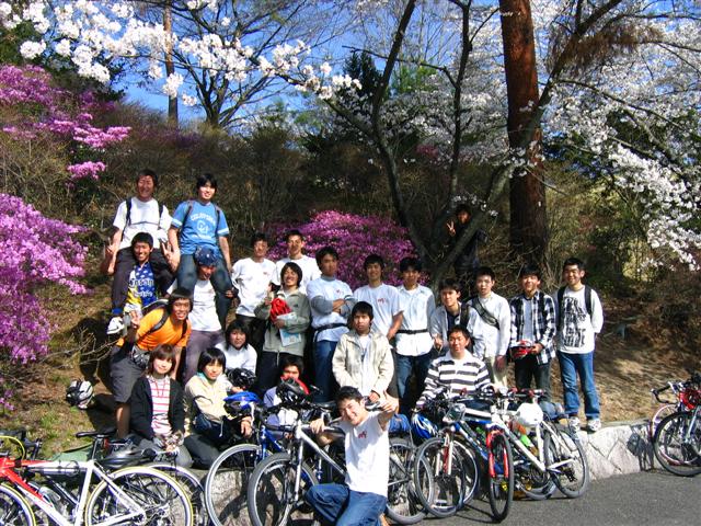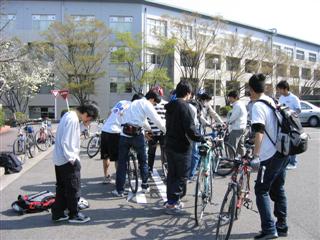 | さぁ、新歓がんばるぞ〜 上級生が自転車を持って続々登場です。 |