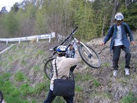 | 上った8人でフラッシュ!(たこうよ) | 下りは快走路、一年生も風を感じました |