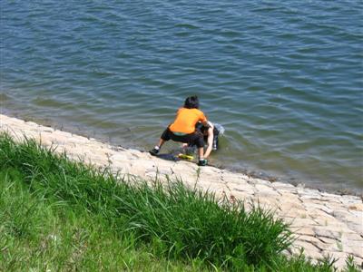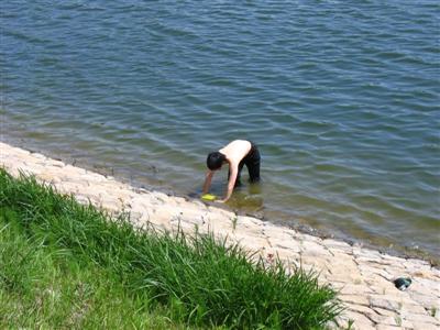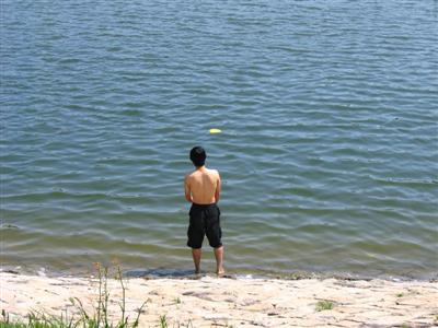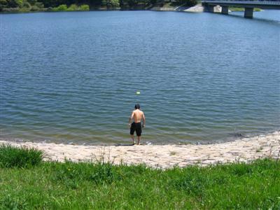 (どうしてフリスビーは、池のほうにばっか飛んでったんだろう・・・)