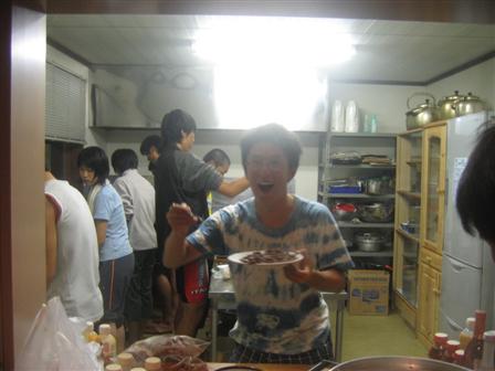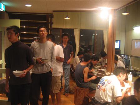 | 夜は配給で〜す。みんなおなかいっぱいになるまで食べました。 |
