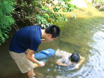 | カプリ君(僕の携帯)で水中通話実験。もちろん失敗! |