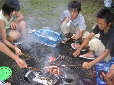 | そこで、ホイル焼き〜!ついでに薩摩芋も焼いてみます♪ |