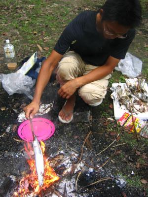 | さぁ、秋刀魚焼きますか〜! 後ろの方でライアン1号がしなびてます。 |