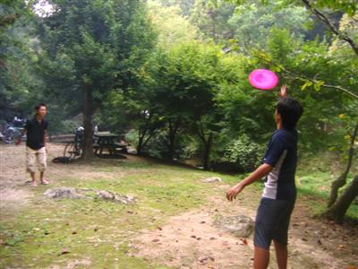 | おなかいっぱいな子たちがフリスビー始めました。 |