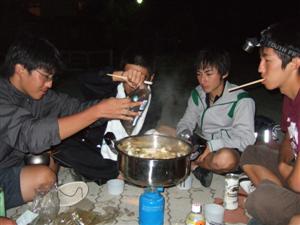 | みんなで楽しくお好み焼きです なぜ鉄板があるかは 気にしちゃいけません |