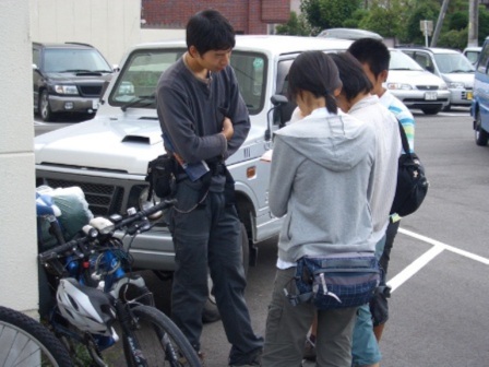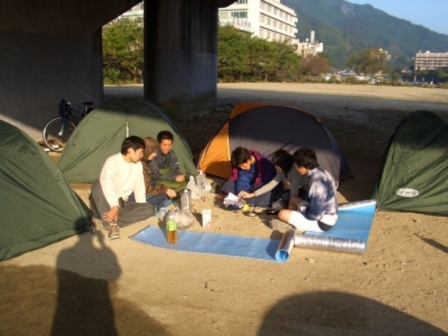 できさん、山口さん、専務さんを迎えて、橋の下で朝ごはん
