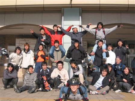| チャリ部総勢22人が恵那駅に集合!! 忙しい中来てくれたたっちゃん&●さん、ありがとう♪ 大友氏と大ちゃん、次の陽春ハリー's 稲武ラン企画でリベンジね。 |
