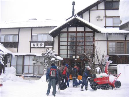 | 夜行バスに揺られ、小さな一軒宿に着きました。 |