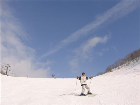 | 樹氷がきれい・・・青空の中、颯爽と滑りました。 |