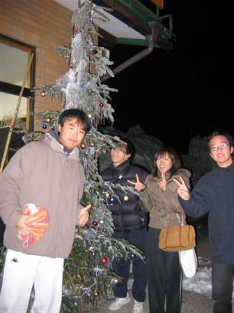 | 遅咲きのクリスマスツリーと今回の旅を盛り上げた上級生たち。 俺たちの合言葉は旅情とダン・ディズムですから! |