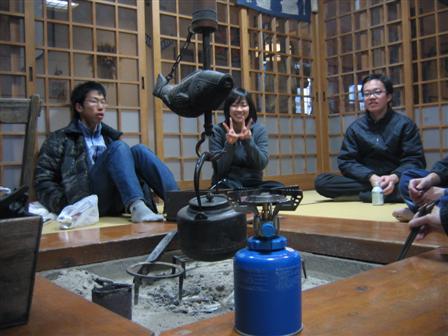 | 囲炉裏を囲んで、夜遅くまで語ってました。。おやすみなさい。 |
