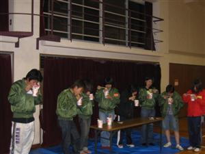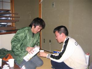 | 最後の班の飲み会っす。 4日間なんてすぐだったなー。 それにしても、うちの班は、 このヤクモ&のっぴペアに 笑かしてもらいましたの。。(笑) |
