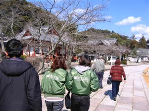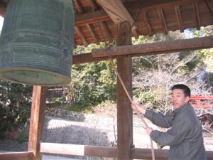 お寺の鐘をついてみます。 まぁ、とりあえず、おもいっきり。 |