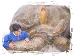 大変です、西尾さんが!! 有明海の大タコに!!! |