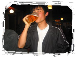味わって飲みます〜 と言って、一揆する我等の部長。 |