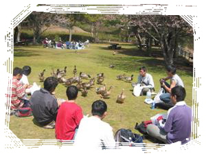 あひると一緒にお昼ご飯〜 新歓ランみたいな雰囲気で 春のぽかぽか陽気にいい心地♪ |