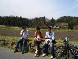 | 途中の道端でしばし休憩 |