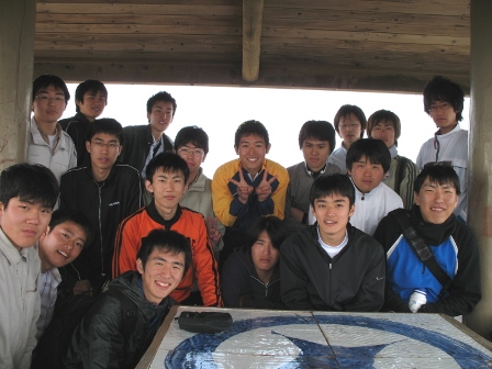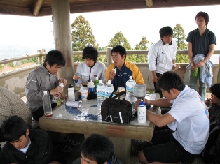 頂上にて。みんなでカップラーメン食べました! |
