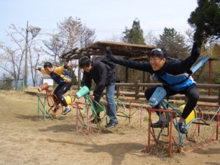 豪快に遊具を使いこなす上級生 |