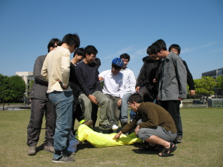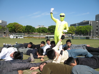 朝豊講前で色んな人を交えて記念撮影。シャッターに間に合わない!