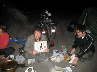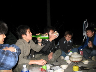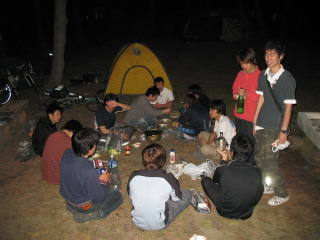 予定通り小舞子キャンプ場で鍋です。 神谷んも今晩から参加。 この後一人の男が海に散っていきます。 |