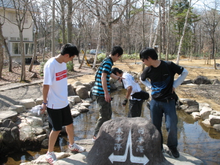 雪がまだ残っていました。 ちょっと休憩です。 |
