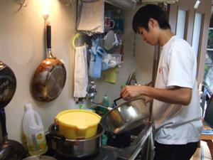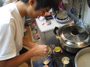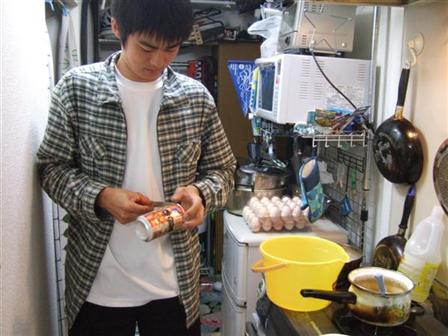 もやしぷりんを作るぶちょー。 他にもみそパンとかカレーとか。 |