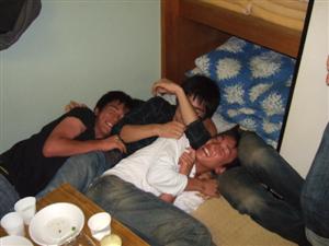 1年生と絡み合うけんにぃ。 やっくんもさえっぱも真っ赤です。 |