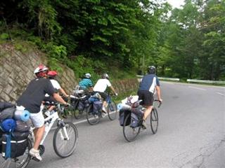 ![]() 夕焼けに映えるチャリ部の仲間たち |