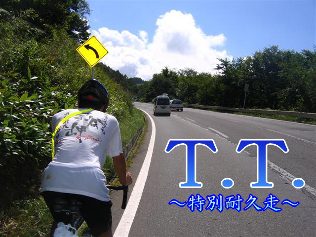 T.T. それはチャリ部で最も熱い夏 代々先輩たちから受け継いできた伝統あるイベントだ。 今年は新潟県の上越から、遥かかなた山梨県の河口湖まで総距離300キロもの道のりを 東工大を含めた40人の熱きランナーたちが颯爽と走り抜けた。 時代の変化にともない、タイムトライアルから特別耐久走へとそのかたちを変え、 今後も理想的なかたちを求め、さらに進化をつづけていくだろうが、 このイベントに込める皆の熱き思いはこれからも絶対に変わることはないだろう。 そう、これこそチャリ部が誇る一大イベント T.T.なのだ!! |