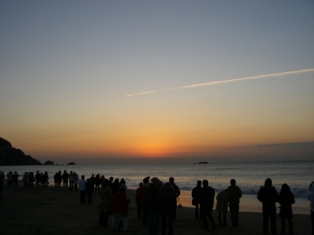 ![]() さてさて、豊川稲荷から70キロぐらい走り、 日の出前には伊良湖岬に到着! 海岸はすでに日の出を待つ人達でにぎわっていました(^^) |