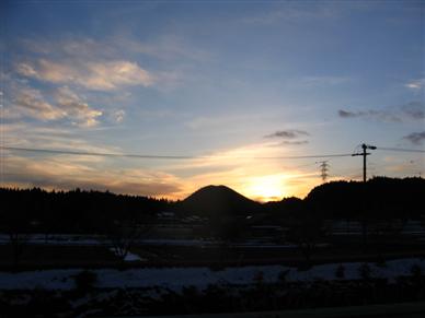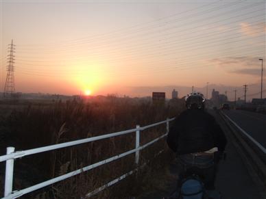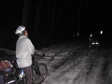 | ▲沈みゆく太陽 | ▲路面凍結とブロックタイヤのなべちゃん |